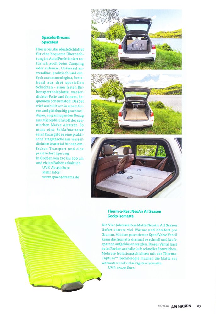 6.4.2018Nicht nur in einem Wohnmobil oder Bulli lässt es sich gemütlich übernachten. Das SPACEBED® ist das ideale Camping-Zubehör, für eine angenehme Übernachtung im Pkw – eine Kurzvorstellung darf im Camping-Spezial des Automagazins Gute Fahrt somit nicht fehlen!