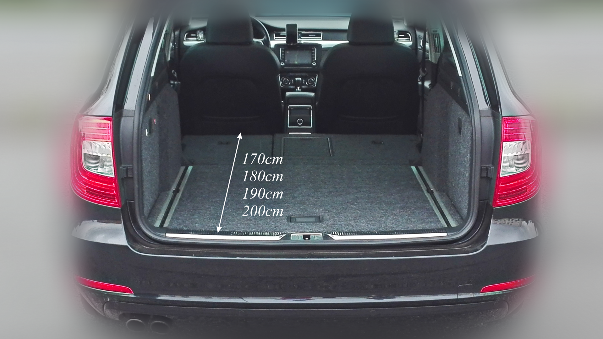 1) falls Sie nach dem Umklappen der Sitze eine gleichmäßige Ebene im Innenraum haben, reicht es, die Vordersitze ganz nach vorne zu verschieben und die Länge von den Vordersitzen bis zur Kofferraumklappe zu messen.